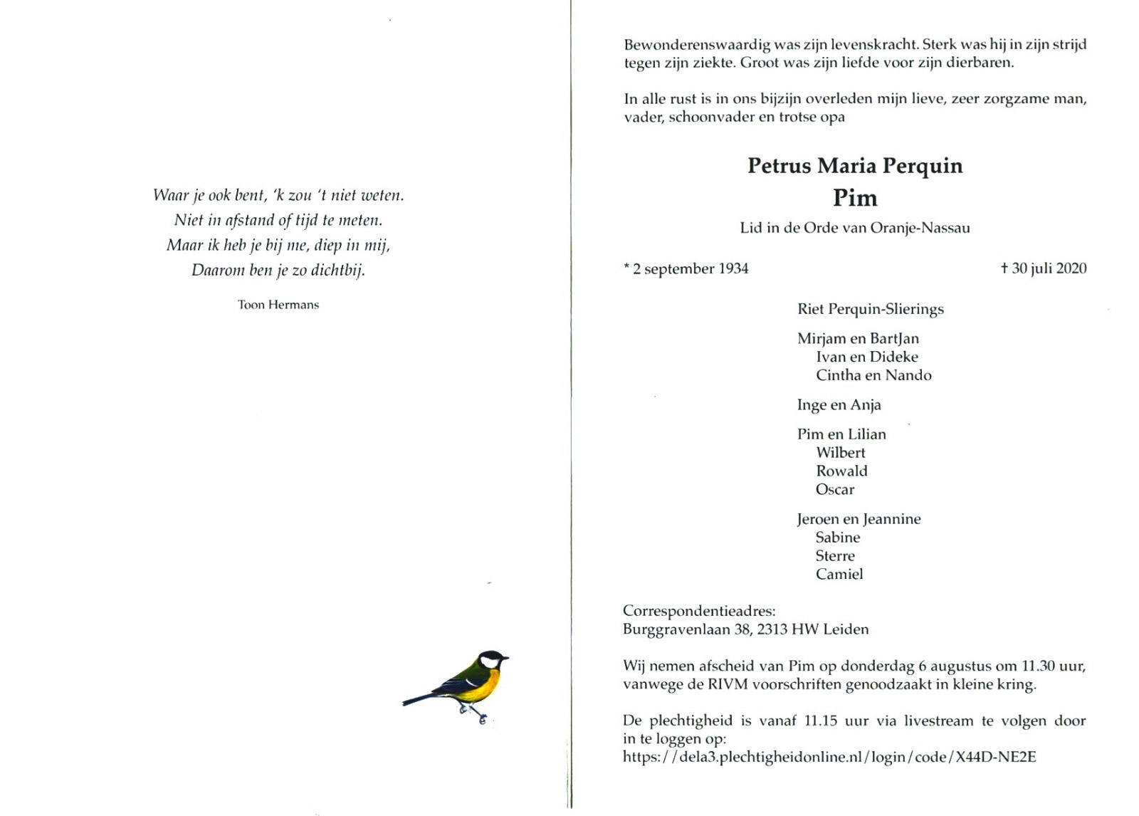 Pim Perquin is overleden